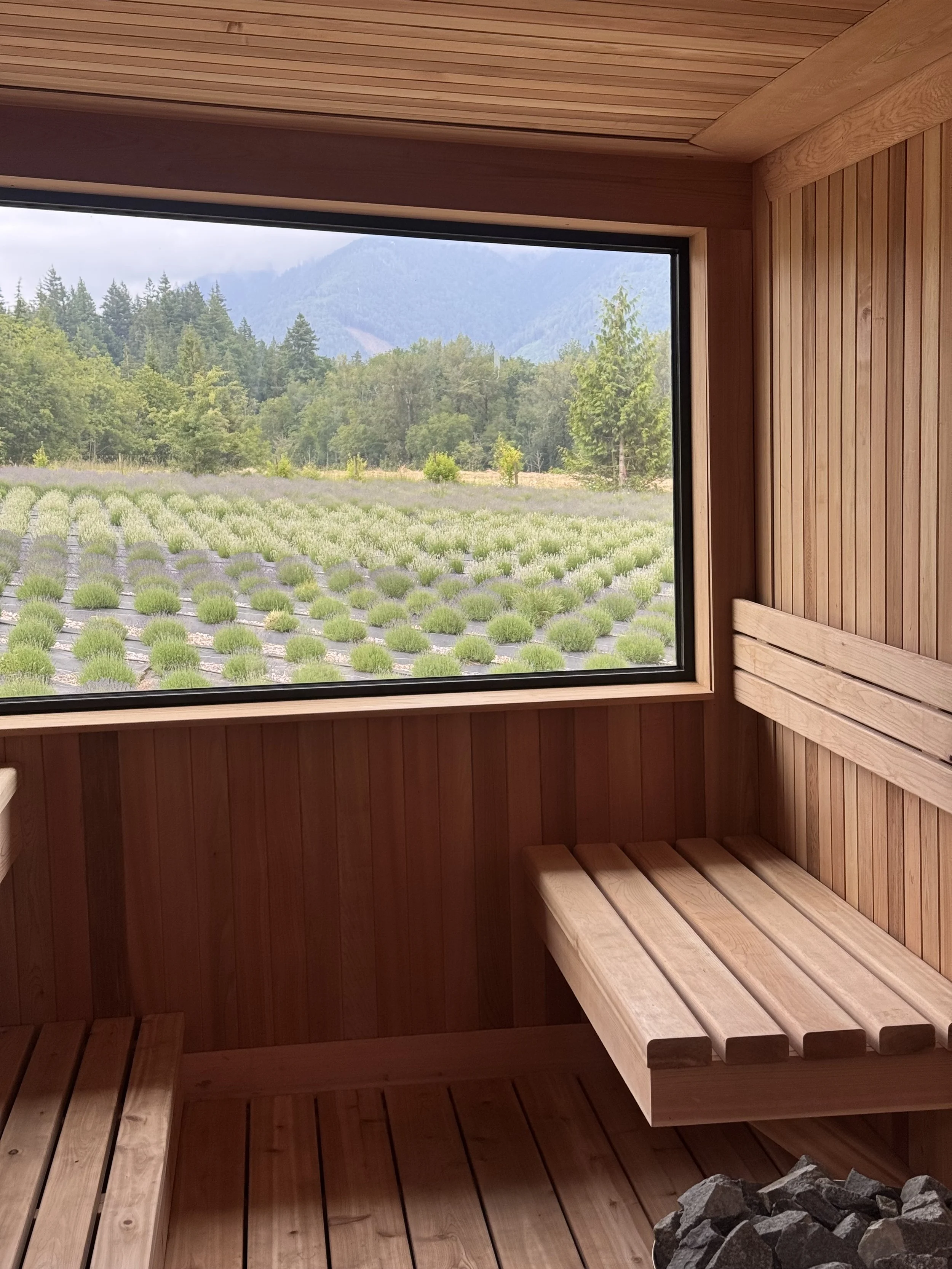 Melt into the warmth of the sauna, then refresh with a cool shower in the A-frame cabin followed by cool lavender infused cloths. Between these rituals, wander the lavender fields, touch the earth, and soak in the serenity of nature’s medicine.